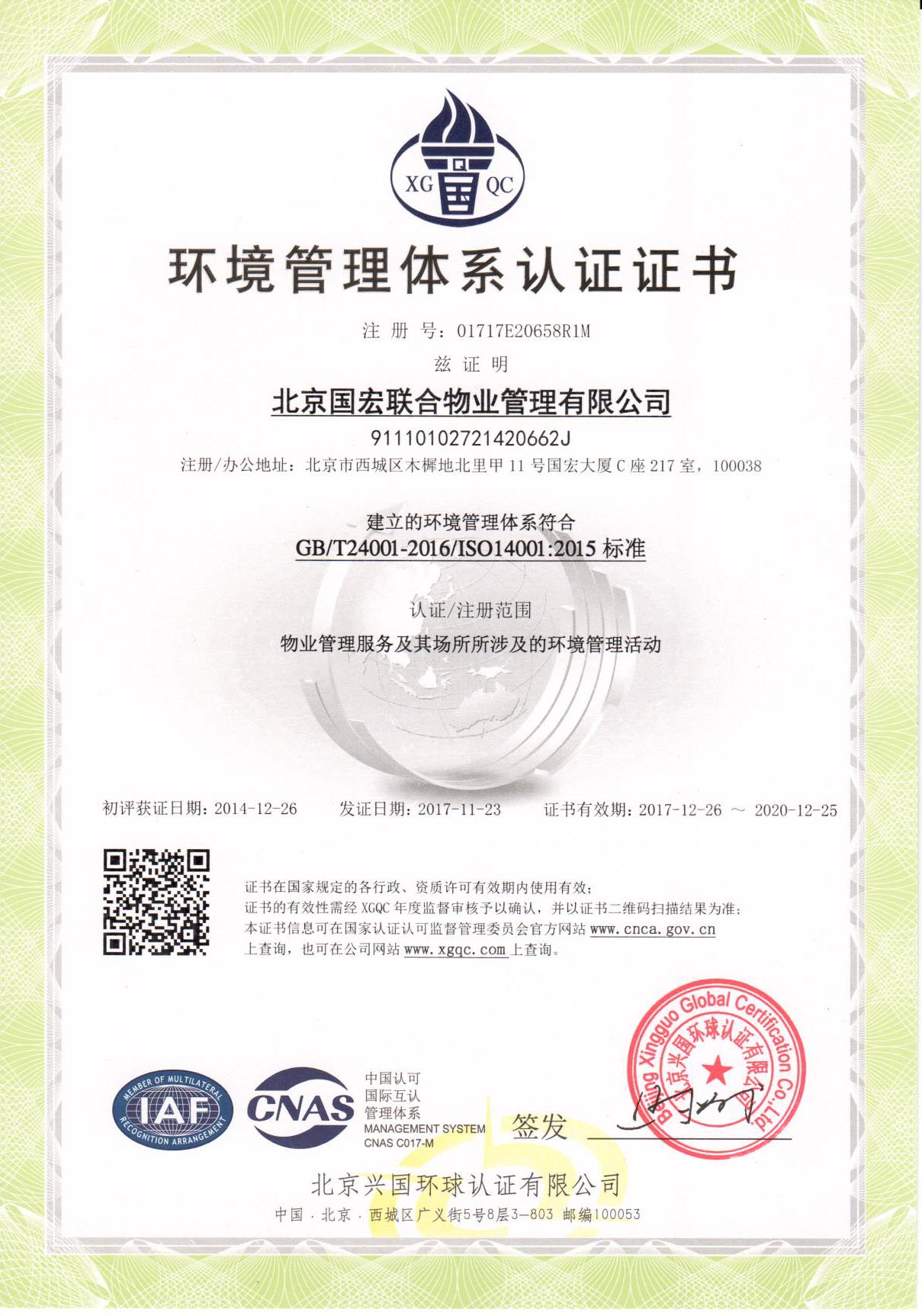 环境管理体系认证证书