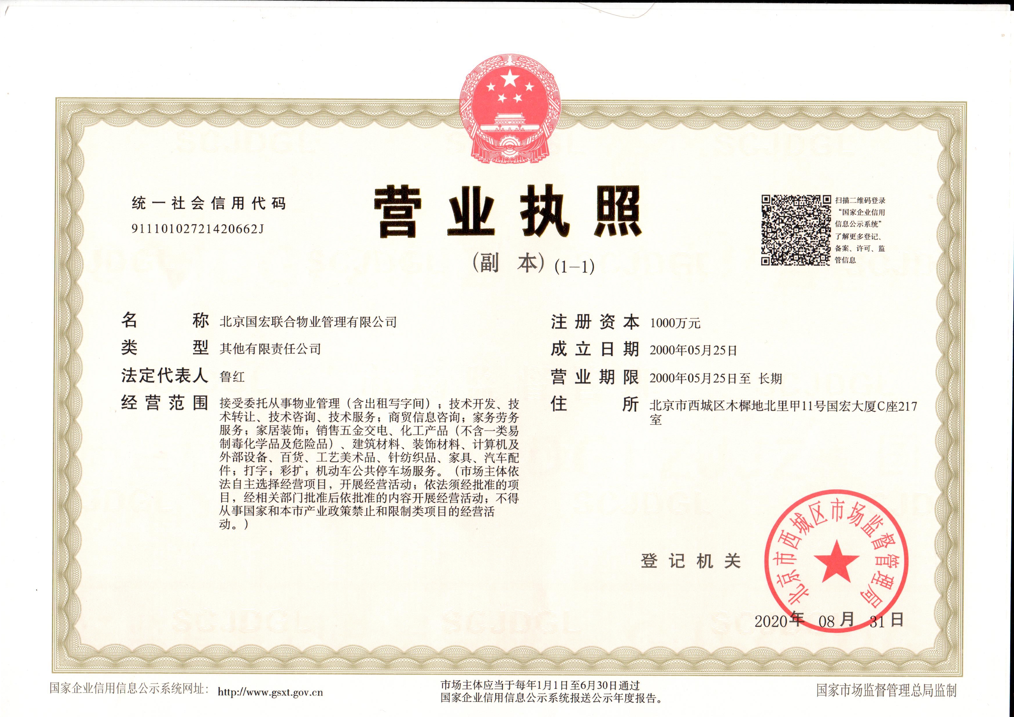 北京国宏联合物业管理有限公司(以下简称:国宏物业)是国家发改委宏观经济研究院下属公司,现为中国物业管理协会常务理事单位,是具有国家物业管理二级资质的专业物业公司,公司为首批通过国际权威机构ISO9001:2000版国际质量管理体系认证,并获得国际认证联盟在全球34个国家和地区承认的10Net管理体系认证证书企业,开创了物业管理行业双重认证的先河。